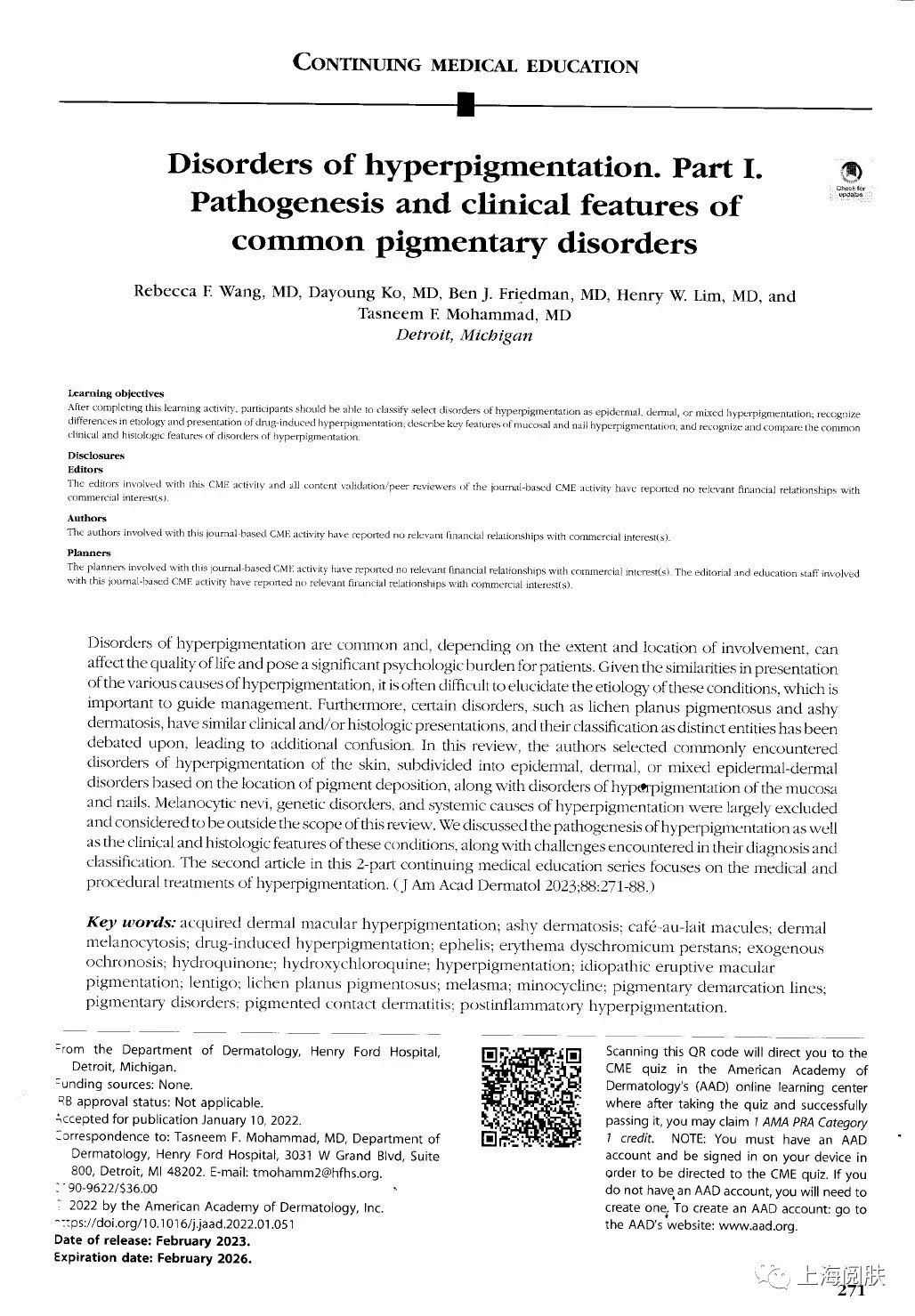 知(zhī)名皮膚科(kē)雜(zá)志(zhì↓↔)《美(měi)國(guó)皮膚科(kē)學會(huì)雜(zá)↓≠♦志(zhì)》每期領頭的(de)是(sh∞ì)兩篇繼續教育文(wén)章(zhāng)。第一(yī)篇介紹選中皮膚↔≥問(wèn)題的(de)病理(lǐ)、診斷、臨床特♥÷←征等。第二篇則討(tǎo)論該皮膚問(wèn)題的(de)治療和♣™ (hé)管理(lǐ)。兩篇文(wén)章(zhāng)由相(x≥•σ"iàng)關專家(jiā)團隊執筆(bǐ),信息量大(dà),很(π¥hěn)值得(de)細讀(dú)學習(xí)。