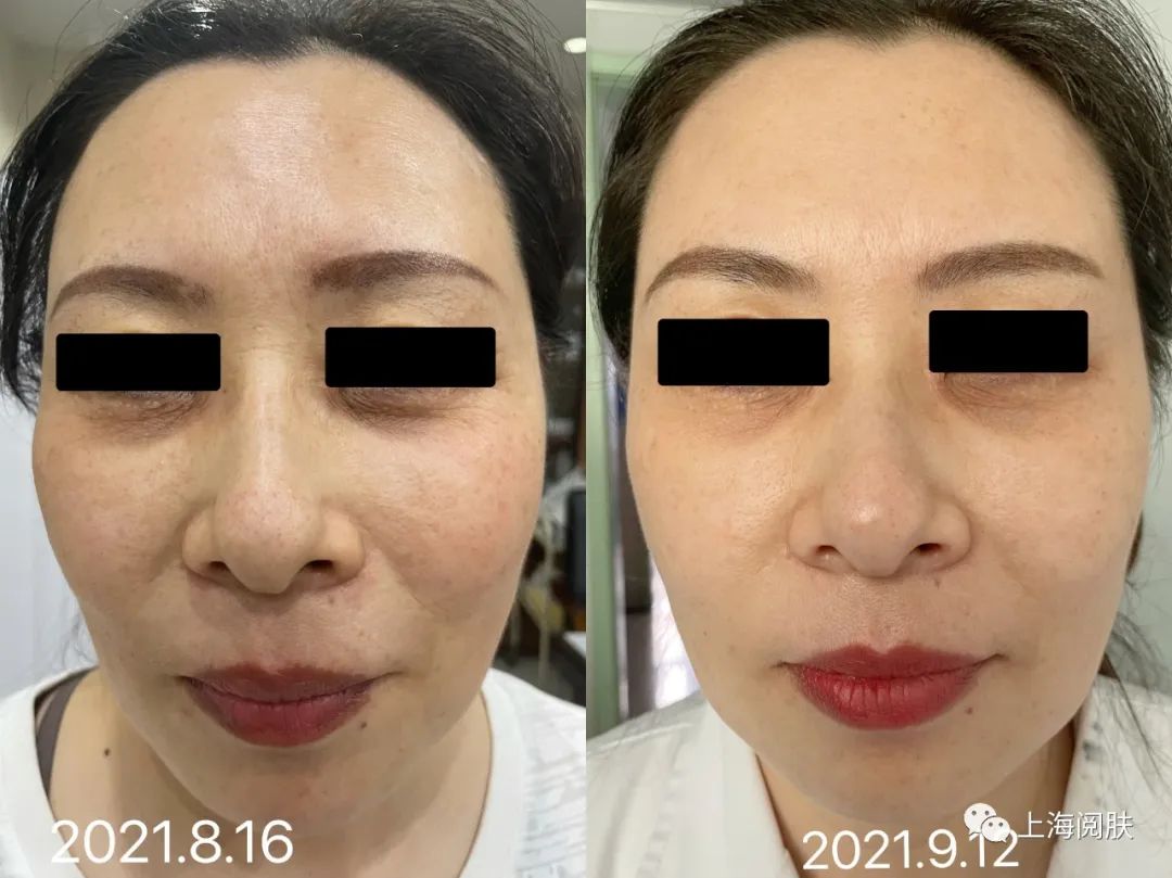 楊女(nǚ)士,46歲,眼部皮膚衰老(lǎo)和(hé)黑(hēi)眼圈比較嚴重,本想手術λ≤☆(shù)提眉修複雙眼皮。我跟她(tā)做(zuò)了(π♥☆©le)點陣激光(guāng)抗衰後用(yòng)諾葳奇産品₩輔助舒緩黑(hēi)眼圈,這(zhè)是(s✔πhì)一(yī)個(gè)月(yuè)的(de)效果對(duì)比。
