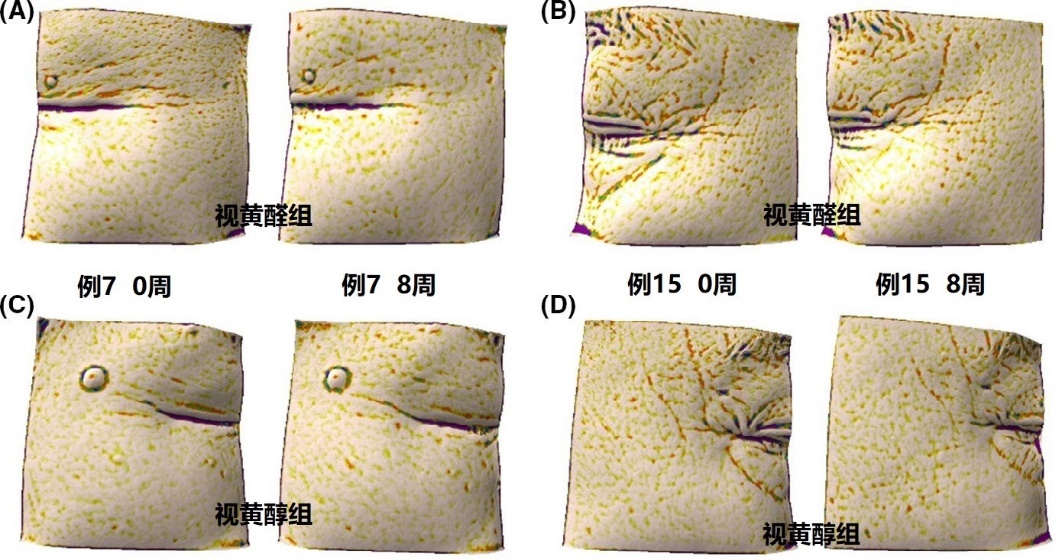 受試者的(de)魚尾紋深度用(yòng)Antera 3D相(xiàng)機(jī)測量,結果兩組的∏♥(de)深度均有(yǒu)減少(shǎo),其中視(shì)黃(hu™↓áng)醇半臉8周後減少(shǎo)10.27%,視(shì)σ∏黃(huáng)醛半臉減少(shǎo)23.7%,差距有(yǒu∞↕)統計(jì)學意義(p = 0.001):